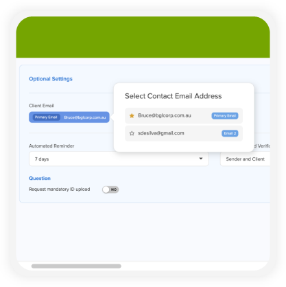 ID verification requests and resend actions now support selecting an alternate recipient email address.