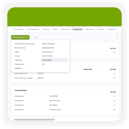New alerts (due, upcoming, passed) help track statutory obligations more effectively and reduce the risk of missed deadlines or penalties.